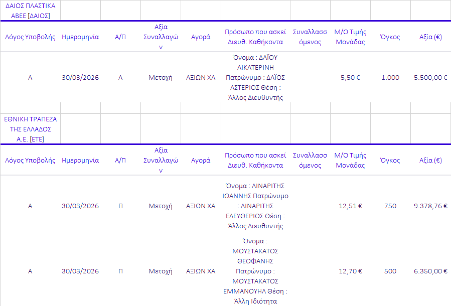 Γνωστοποιήσεις συναλλαγών |