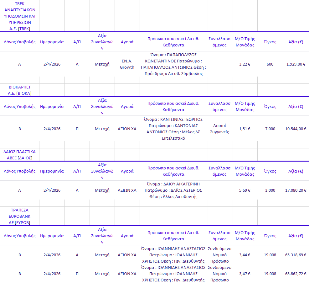 δύο ακόμη πωλήσεις, με το συνολικό τίμημα να διαμορφώνεται στα