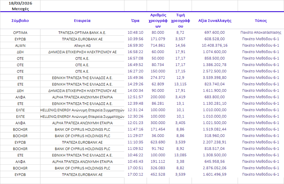 Γνωστοποιήσεις συναλλαγών |