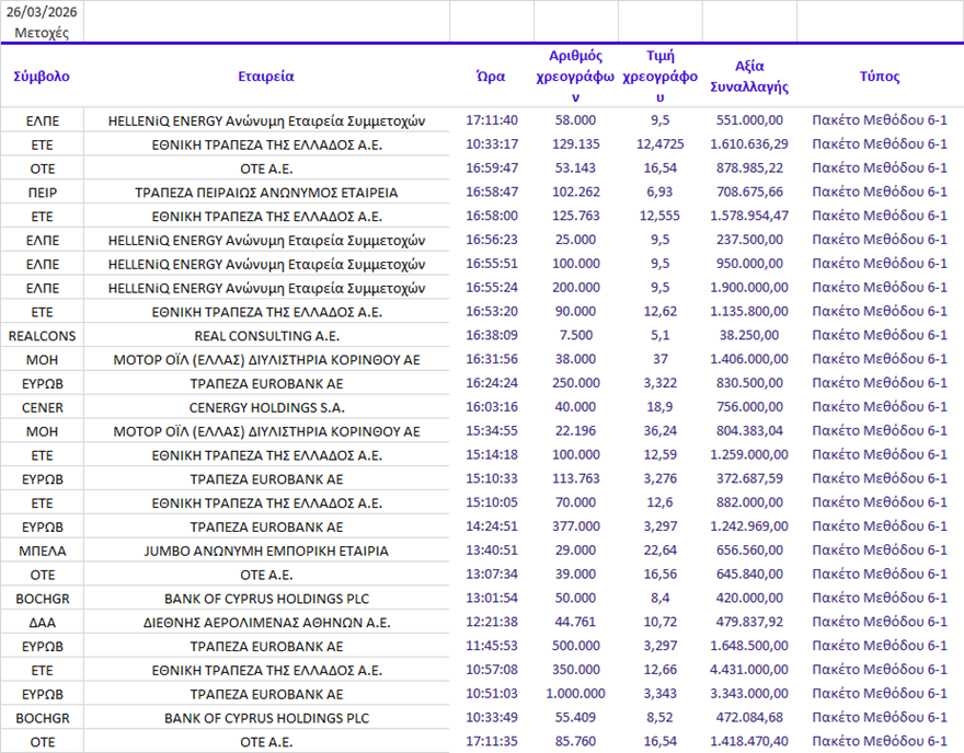 αναφορά στις αποδόσεις των τραπεζικών μετοχών για τον Μάρτιο,