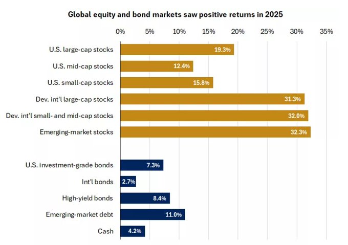Emerging markets had a great year in 2025, clocking an impressive 32.3% gain.