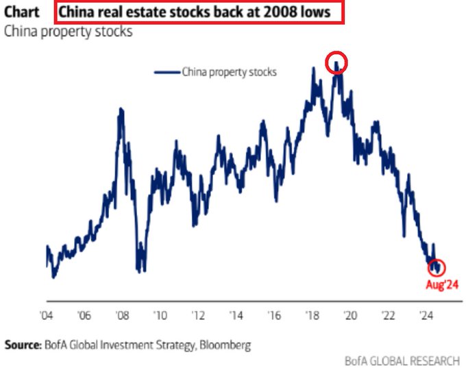 Real estate inventories remain elevated in China. Falling just -3.5% year-over-year, per CREIS.