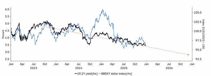 yields (and fed policy) both suggest that dollar weakness is
