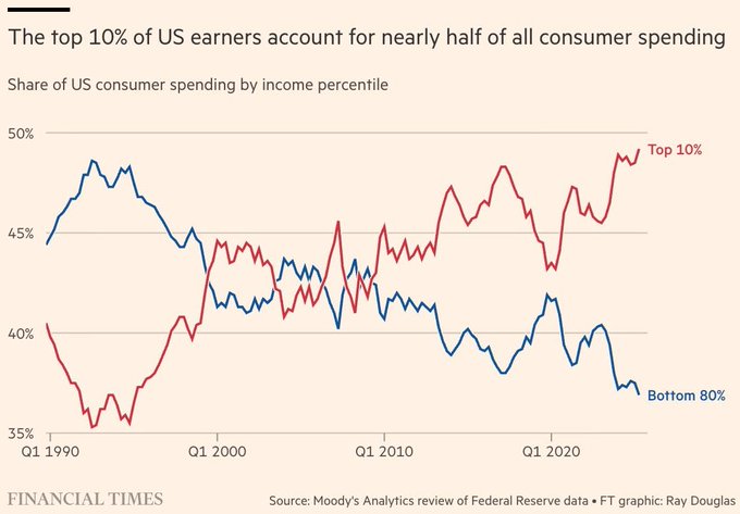 This is 100% completely unsustainable as a society. Nearly 50% of all consumer spending now comes from the top 10% of earners