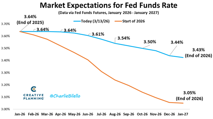 At the start of the year, the market was pricing in 2 Fed rate cuts. Today: just one cut, and not until the December meeting