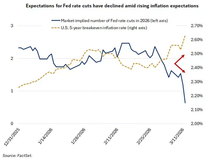 As inflation expectations rise, the market is pricing in fewer rate cuts by the Fed