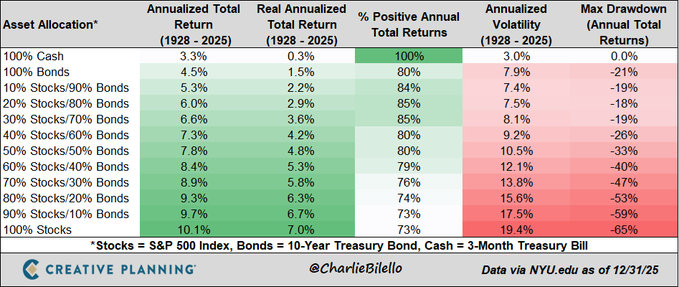 From 100% Cash to 100% Stocks: Total