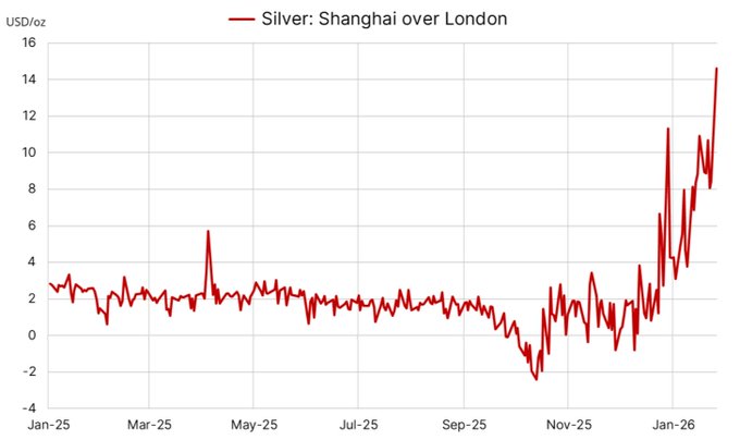 The spread between silver prices in Shanghai vs London is absolutely bonkers