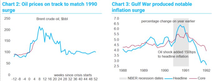 If this oil shock is anything like 1990, it may still have more upside, could contribute to inflation accelerating and may even help to trigger a recession