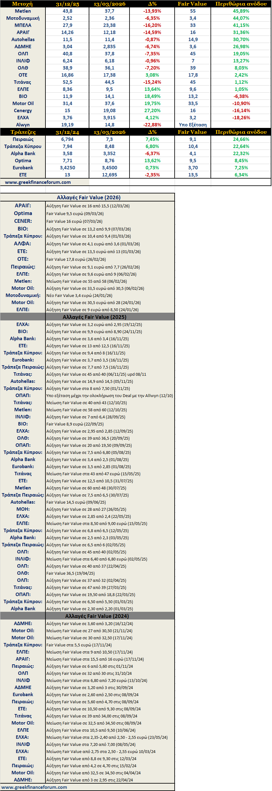 Τα Fair Value, οι αποδόσεις του 2026 και τα περιθώρια ανόδου upd