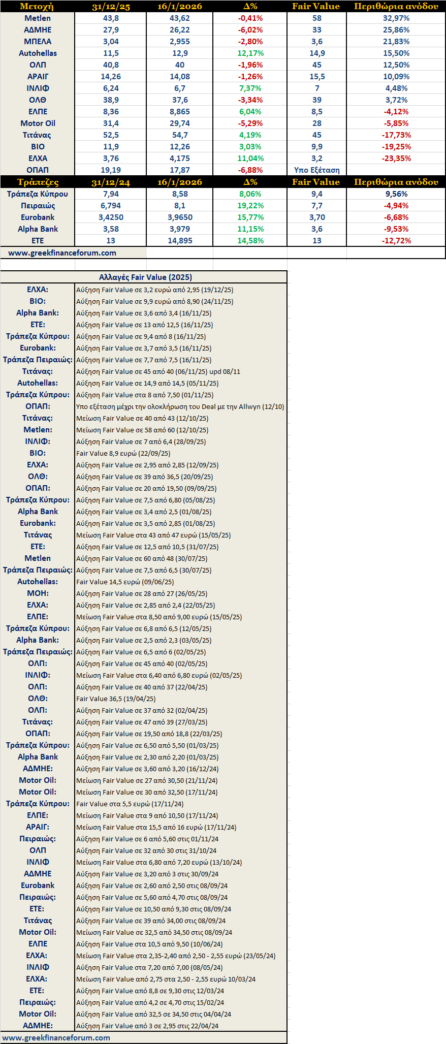 Τα Fair Value, οι αποδόσεις του 2026 και τα περιθώρια ανόδου upd