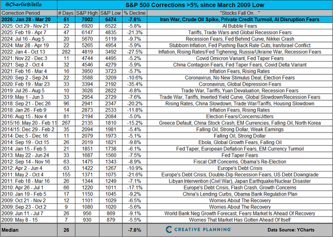 περίπου στο -7,6%, ενώ η μέση διάρκεια μιας διόρθωσης είναι