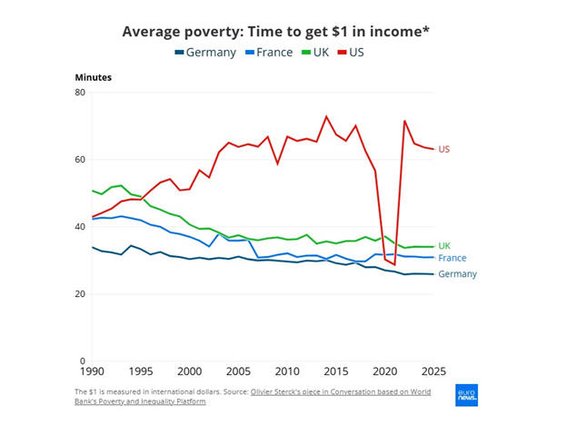 34 λεπτά. Με άλλα λόγια, η «μέση φτώχεια» στις ΗΠΑ είναι