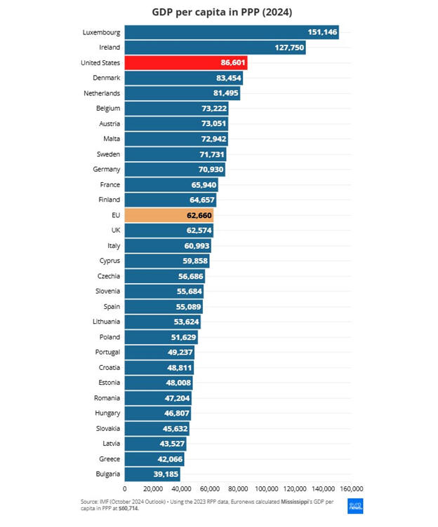 πολιτεία των ΗΠΑ, το Μισισίπι, εμφανίζει κατά κεφαλήν ΑΕΠ