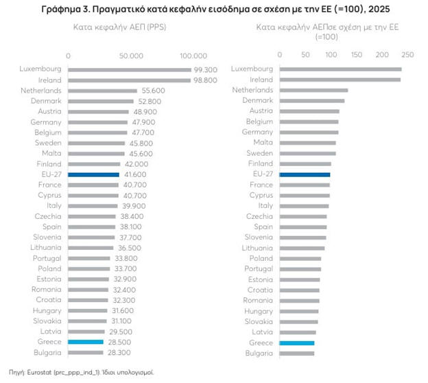 οριακά μπροστά από τη Βουλγαρία. Το εισόδημά της αντιστοιχεί