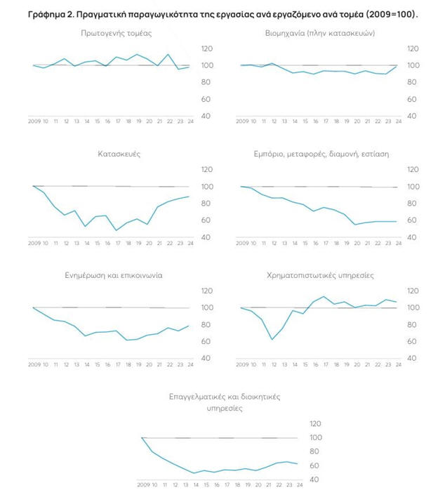 2024 η παραγωγικότητα ανά ώρα εργασίας ήταν περίπου 14%