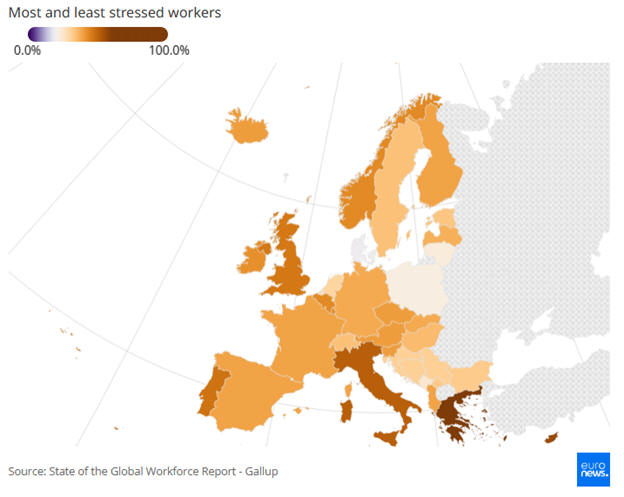 Νότια Ευρώπη εμφανίζουν υψηλότερα επίπεδα άγχους, με την