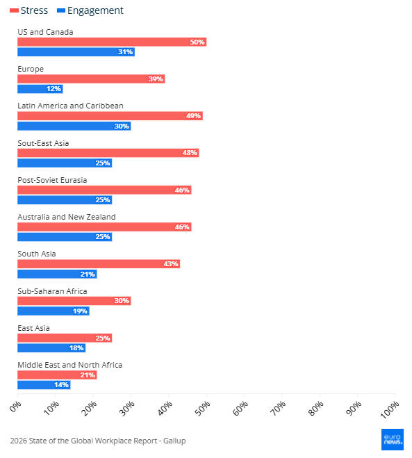 εργασιακό περιβάλλον, με την Ευρώπη να εμφανίζεται λιγότερο