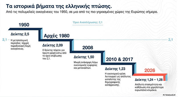 παιδιά ανά γυναίκα, αρκετά κάτω από το όριο αναπλήρωσης των
