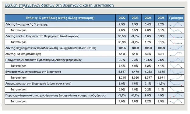 14,8% το 2023 σε 15,2% το 2025, ενώ η μεταποίηση, που