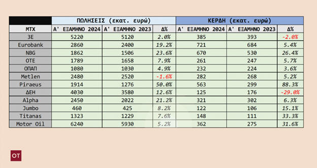 Ακολουθεί πίνακας με έσοδα και κέρδη (μετά