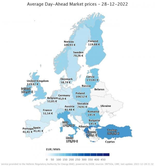 στη Γερμανία είναι 13,58ευρώ/MWh