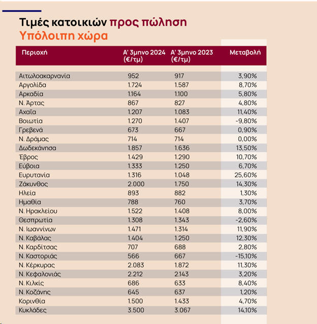 ζητούμενων τιμών πώλησης