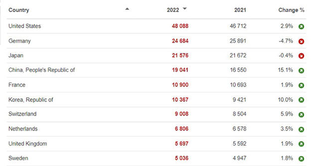 στο EPO το 2022 ήταν οι