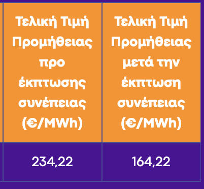 προμήθειας) στα 16,42 λεπτα/κιλοβατώρα, με