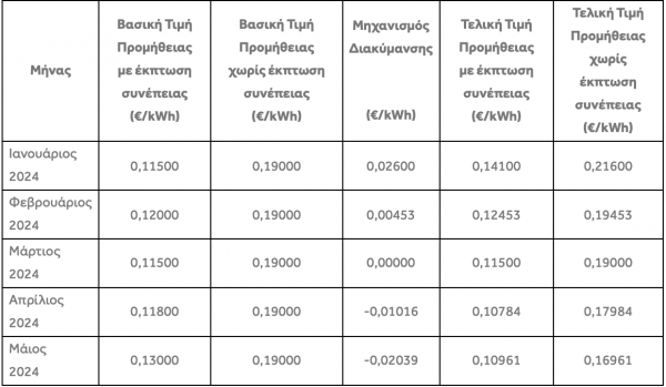 λεπτά/κιλοβατώρα αυξήθηκε η