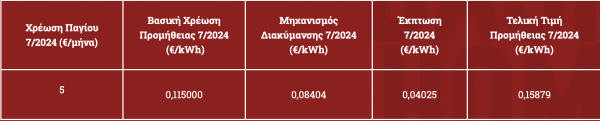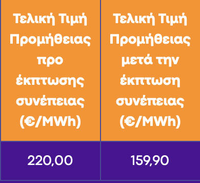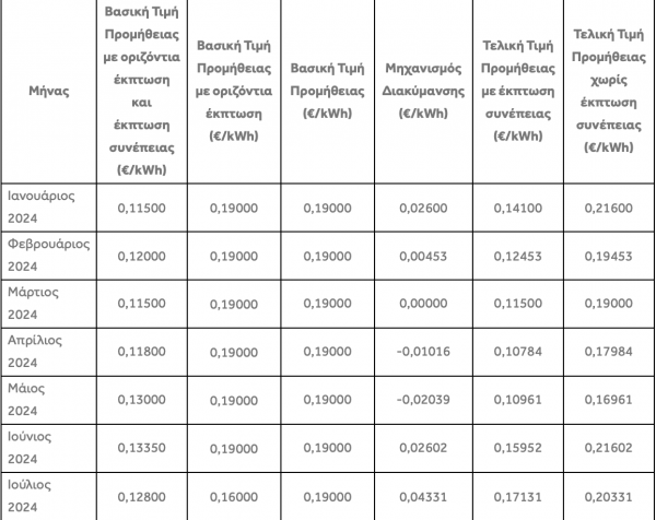 Ιουλίου φτάνει τα 21,99 λεπτα/κιλοβατώρα από