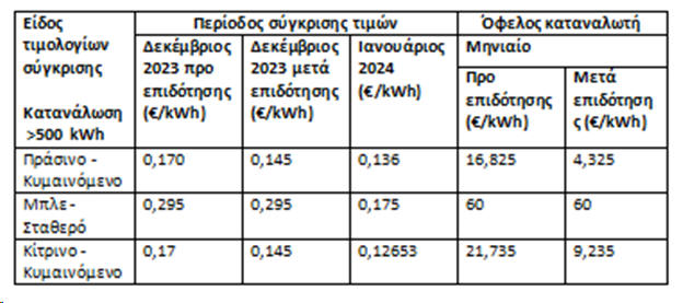 0,17 ευρώ/kWh και 0,145