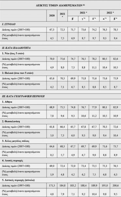 τιμών ακινήτων που