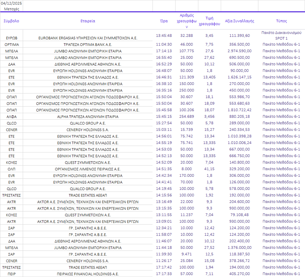 εντοπίζονται στα 3,70 ευρώ και υψηλότερα στα 3,80 και 3,90–4,00