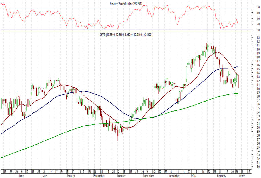 στόχος είναι οι αντιστάσεις στα 10,30 και 10,50 – 10,55 ευρώ.
