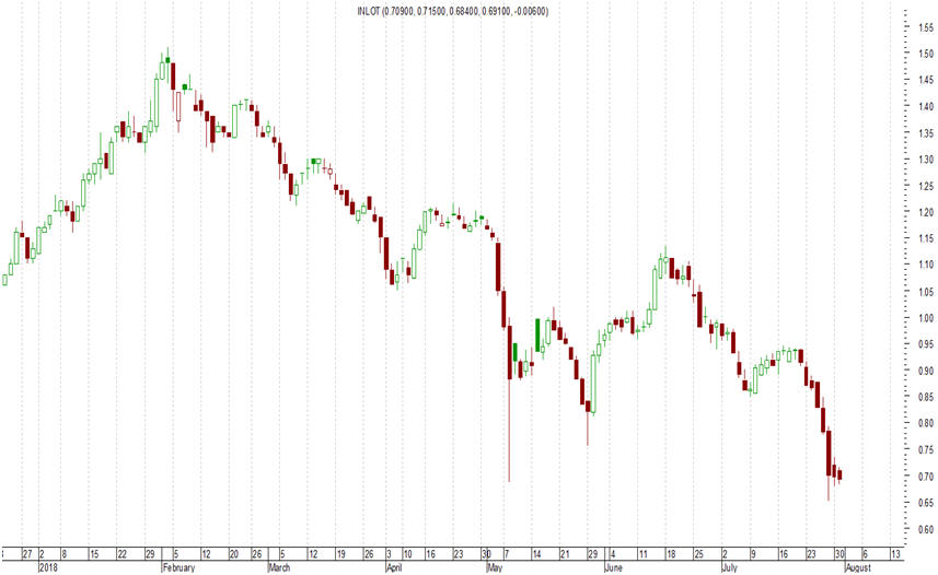 της Ιντραλότ, με κλείσιμο χθες στα 0,691 ευρώ (-0,86%) και