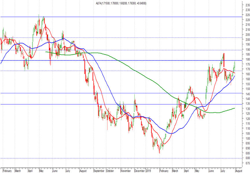 ευρώ έκλεισε χθες η μετοχή τη ΑΛΦΑ, με άνοδο 2,80%. Και μετά