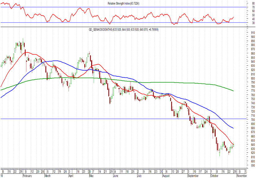 Ας ευχηθούμε o Νοέμβριος να είναι ένας καλύτερος χρηματιστηριακά μήνας, θυμίζοντας πως και κατά μέσο όρο η περίοδος Νοέμβριος – Ιανουάριος είναι για το χρηματιστήριο από τις καλύτερες του χρόνου (χωρίς ντε και καλά να σημαίνει πως αυτό θα επαναλαμβάνεται κάθε χρόνο). Σε κάθε περίπτωση, το χρηματιστήριο είχε την Τετάρτη μια ανοδική συνεδρίαση, με ενδιαφέρουσες διακυμάνσεις, με σχετική αύξηση του τζίρου και τις τράπεζες να συνεχίζουνε να δείχνουν σημάδια ζωής. Βέβαια αυτό που προβληματίζει είναι η παρατεταμένη αδυναμία της αγοράς να επιστρέψει υψηλότερα των 640 – 650 μονάδων (χθεσινό υψηλό ημέρας οι 640,15 μονάδες, +0,55%), τις γνωστές πολύ ισχυρές αντιστάσεις, την διάσπαση των οποίων έχουμε θέσει ως στόχος.