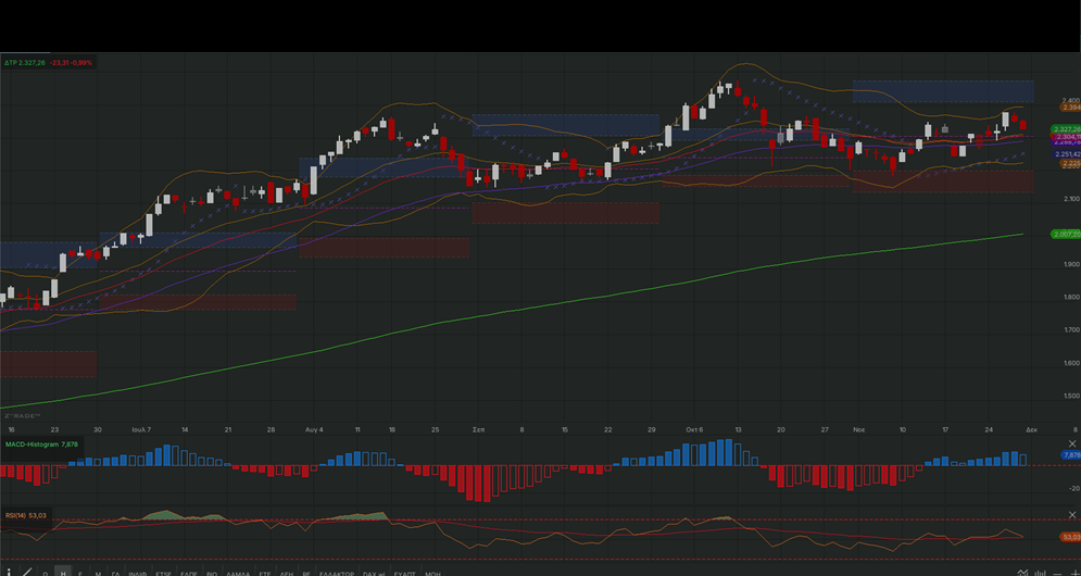 τις κρίσιμες στηρίξεις στις 2.300 – 2.280 μονάδες, αν και