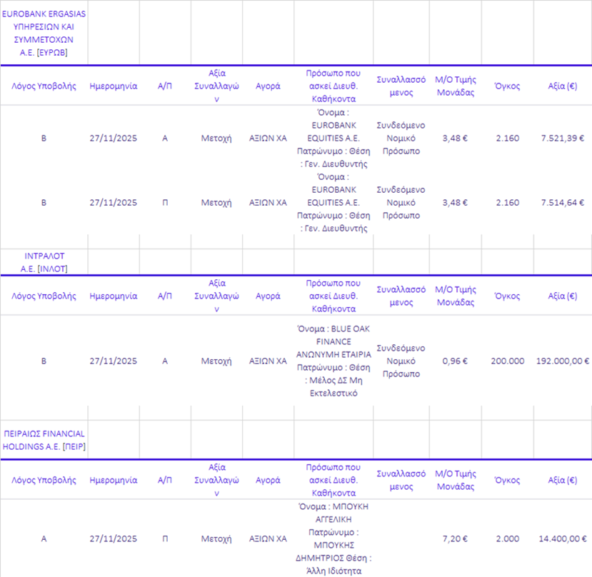 Γνωστοποιήσεις συναλλαγών |