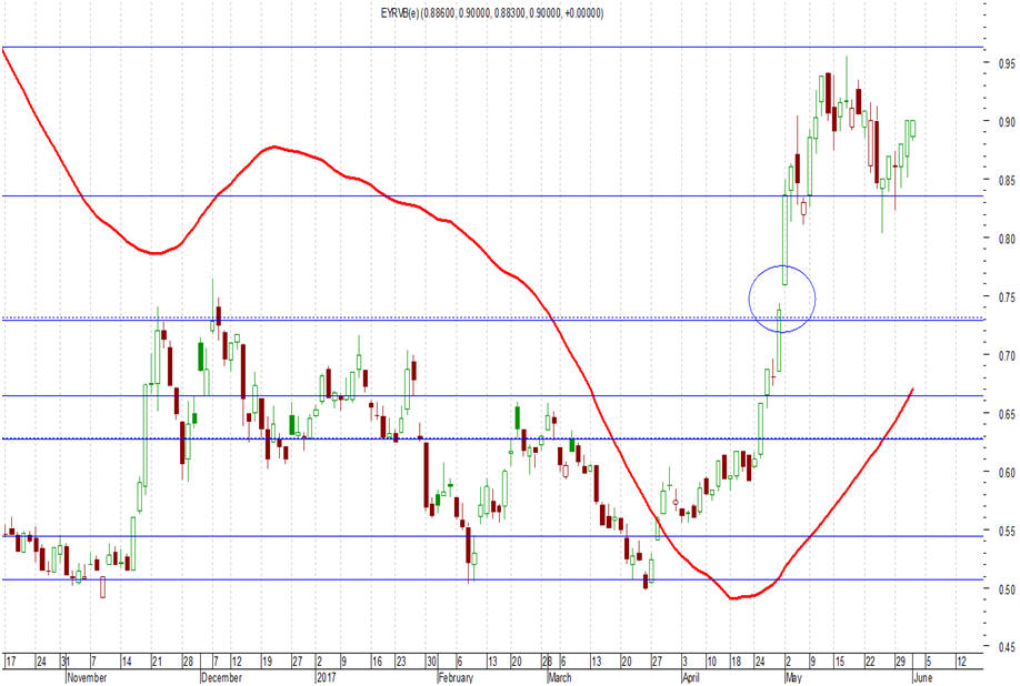 υψηλότερα, οι επόμενες αντιστάσεις είναι στο 1 ευρώ, η