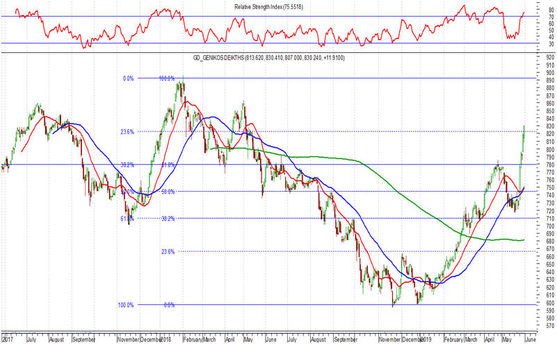 ΓΔ υψηλότερα των 800 – 810 μονάδων (830,24 μονάδες, +1,46%).