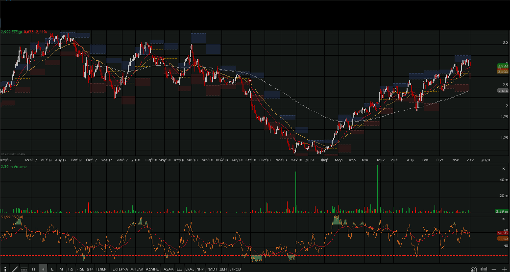 επόμενες αντιστάσεις είναι στα 3,30 και 3,40 – 3,50 ευρώ.
