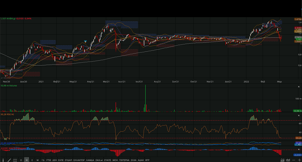 0,94% έκλεισε η ΑΛΦΑ (1,107 ευρώ) και σε σχέση με τα