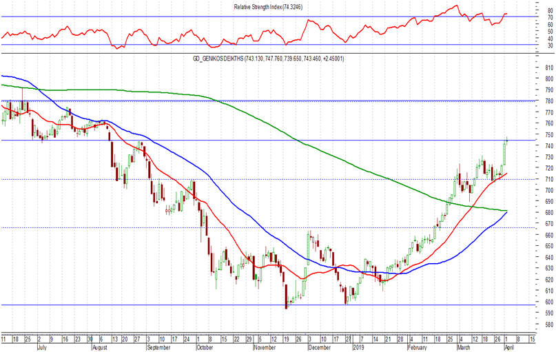 τη συνεχή άνοδο (έκλεισε χθες στις 749,40 μονάδες, +0,80%),