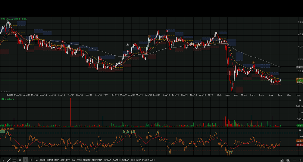 οποία έκλεισε χθες στα 2,93 ευρώ, +1,03%, με υψηλό μάλιστα