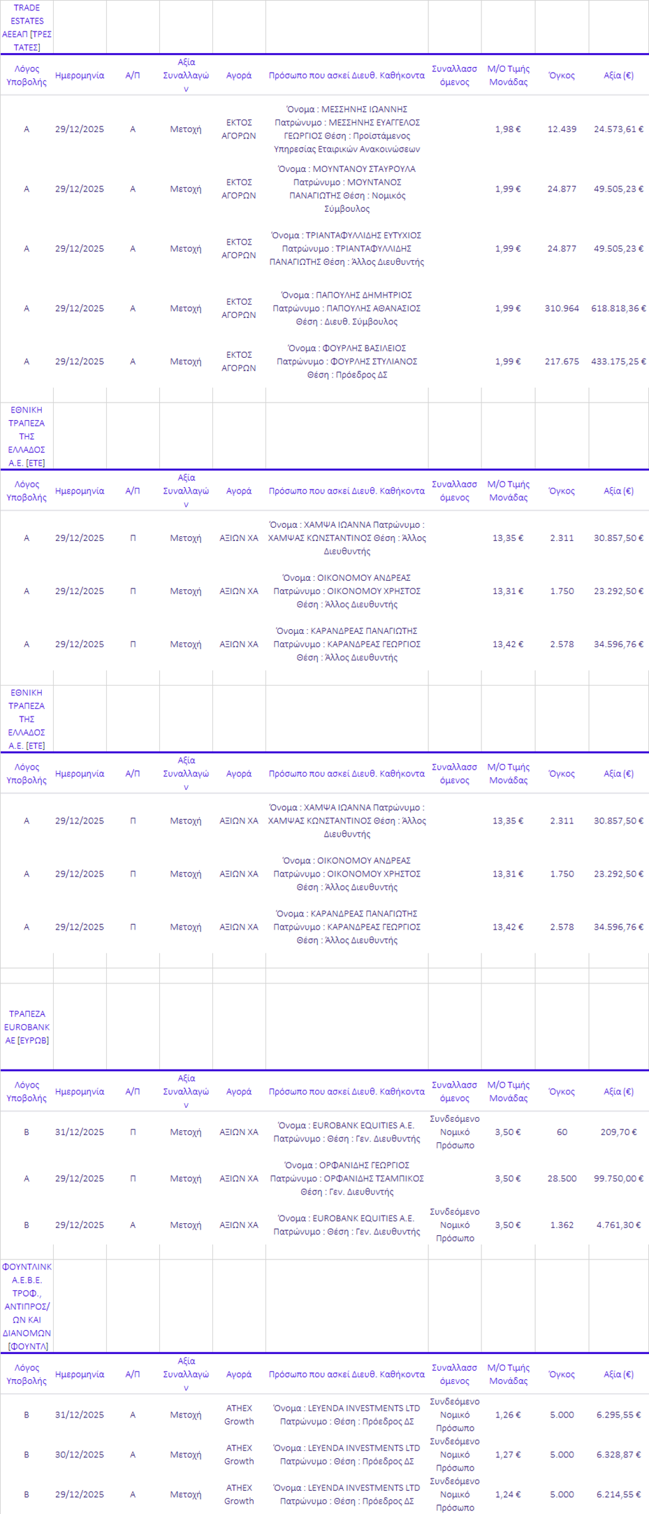 Γνωστοποιήσεις συναλλαγών |