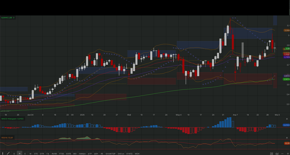 στηρίξεις στα επίπεδα των 2,82 – 2,80 ευρώ. Χαμηλότερα οι