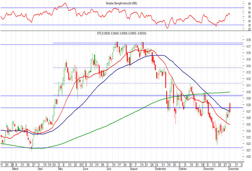 0,277 ευρώ, με το χθεσινό υψηλό ημέρας να είναι τα 0,284