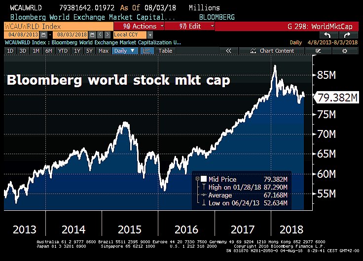 Και θα κλείσουμε με ένα ενδιαφέρον στατιστικό για την προηγούμενη αρκετά μέτρια εβδομάδα για τα παγκόσμια χρηματιστήρια. Είναι λοιπόν χαρακτηριστικό πως σύμφωνα με το παρακάτω δείκτη αναφοράς, τα παγκόσμια χρηματιστήρια είχαν την προηγούμενη εβδομάδα απώλειες 1,1τρις δολαρίων!!!